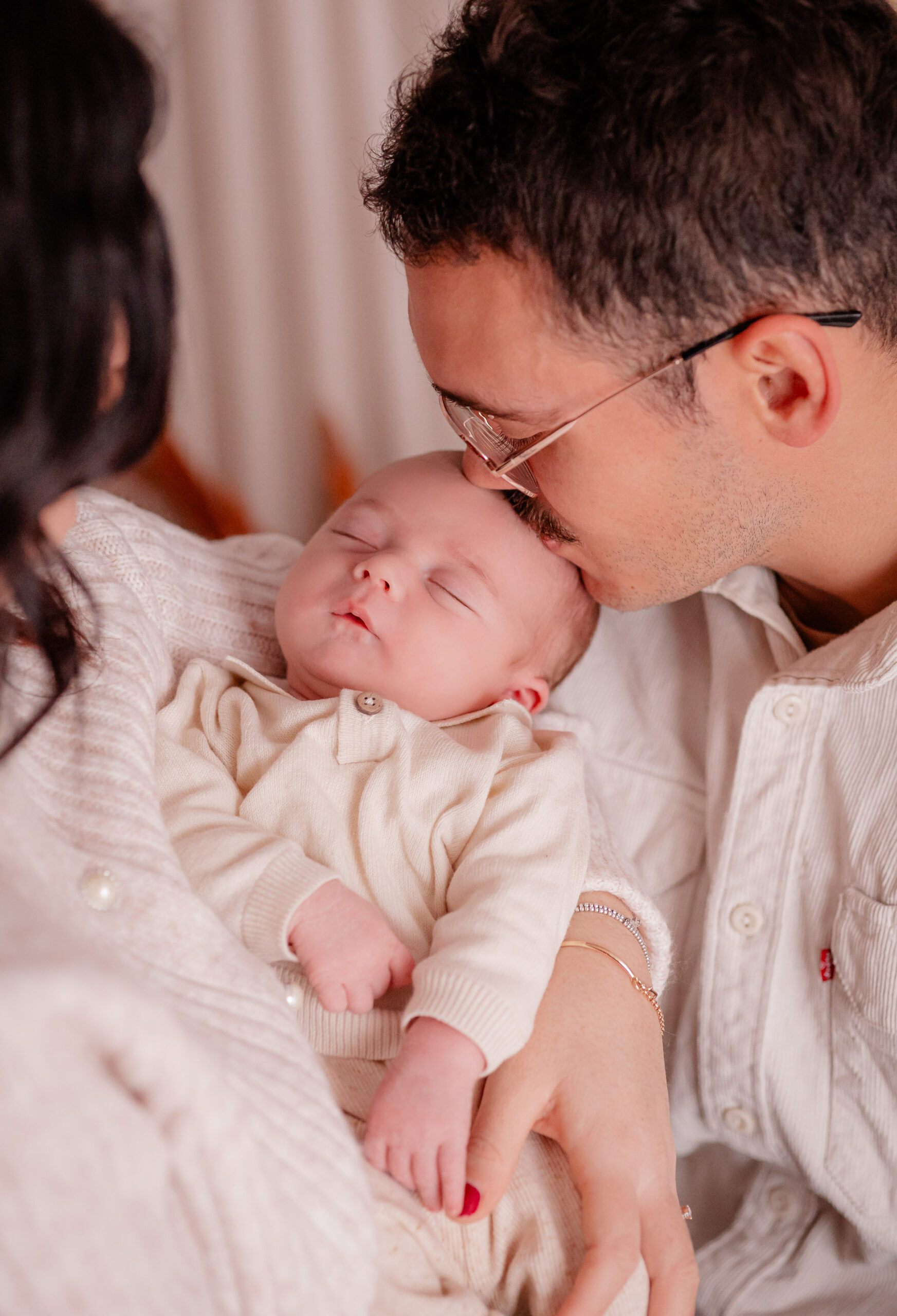 Pour le lieu, tout dépend du style d’images que vous souhaitez : je me déplace à votre domicile pour des photos intimistes et cocooning, ou vous venez dans ma maison pour réaliser des images en studio.